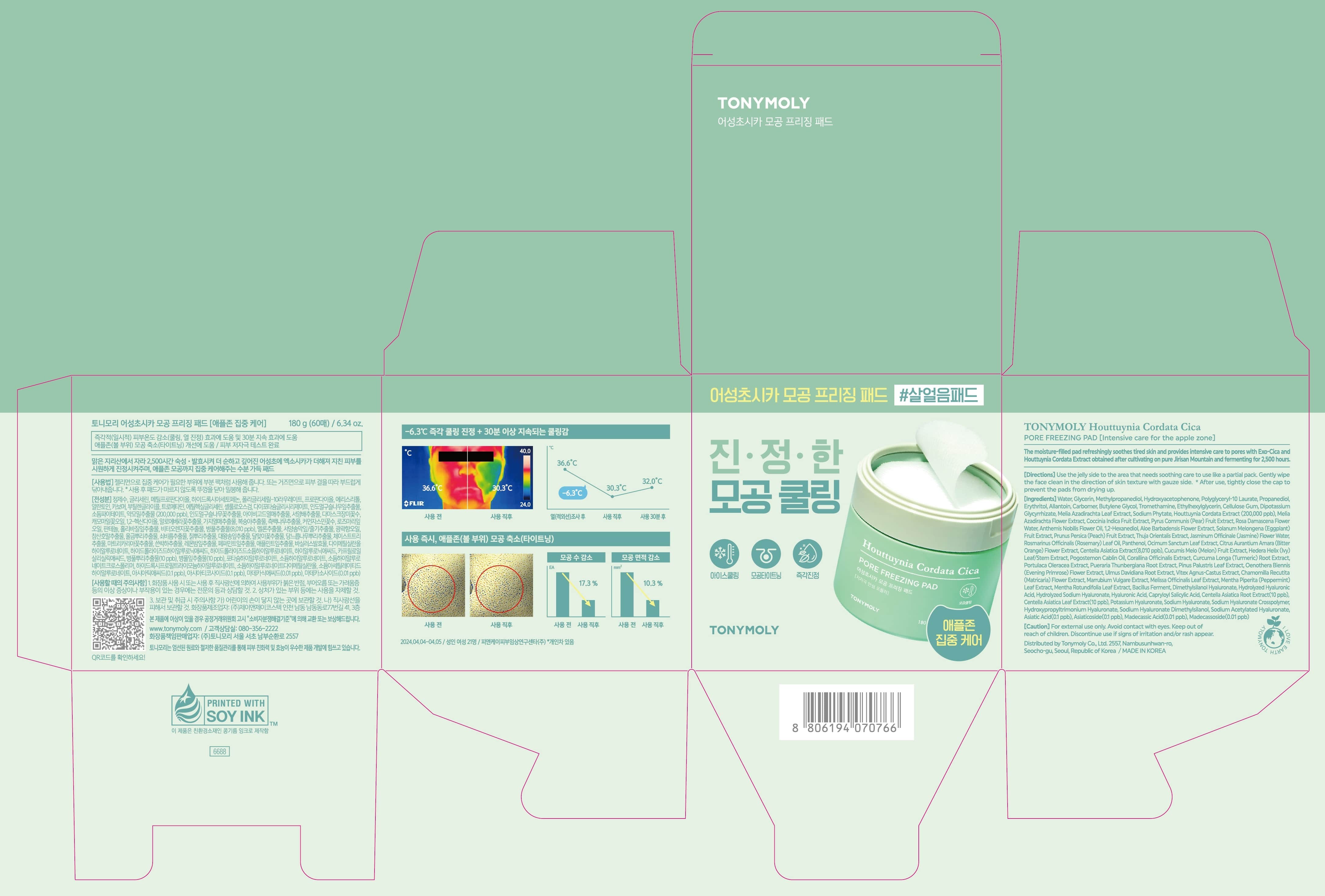 Фиксирующая подушечка для пор Tony Moly Cica, 180 г, 60 листов, 1 шт.