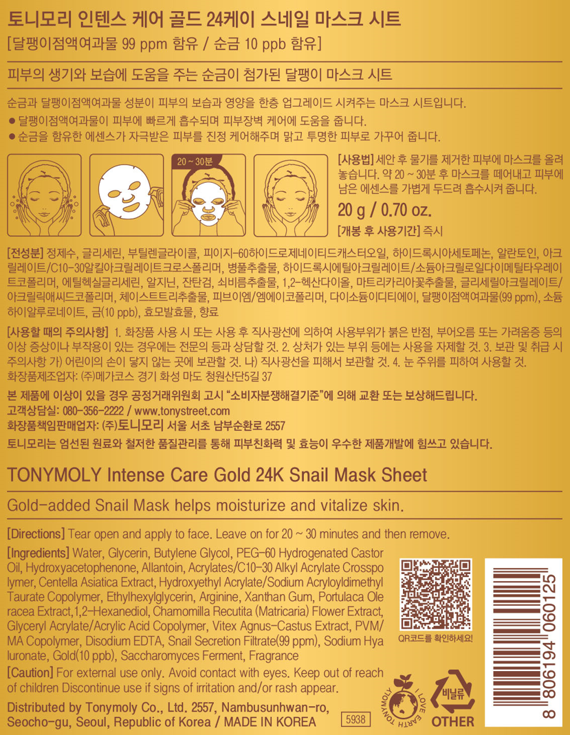 Гелевая маска для лица Tony Moly Gold 24K Snail Gel Mask, 25 г, 1 упаковка