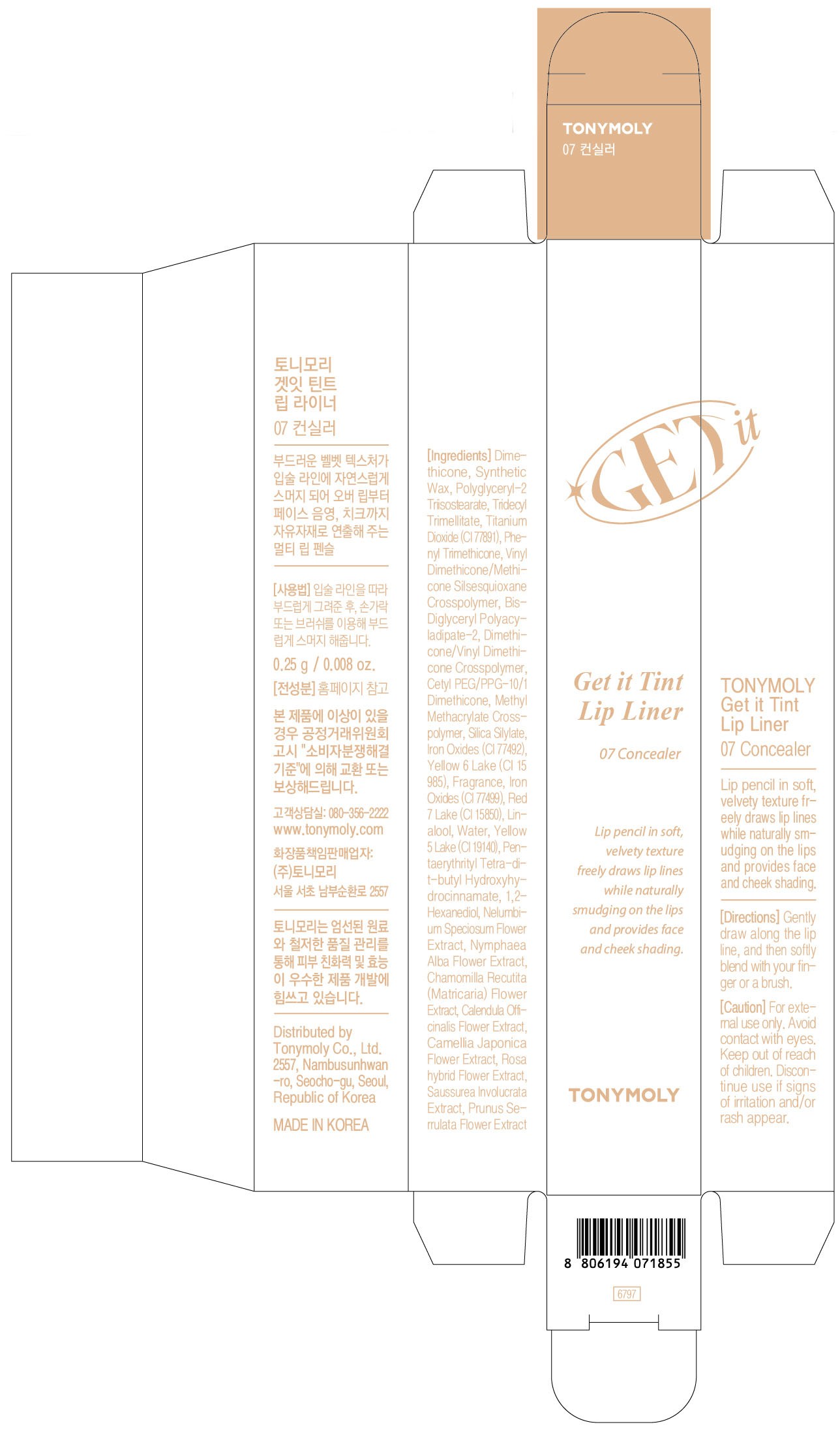 Карандаш для губ Tony Moly Get It Tint, 0,25 г, оттенок 01 Rosy Sand, 1 шт.