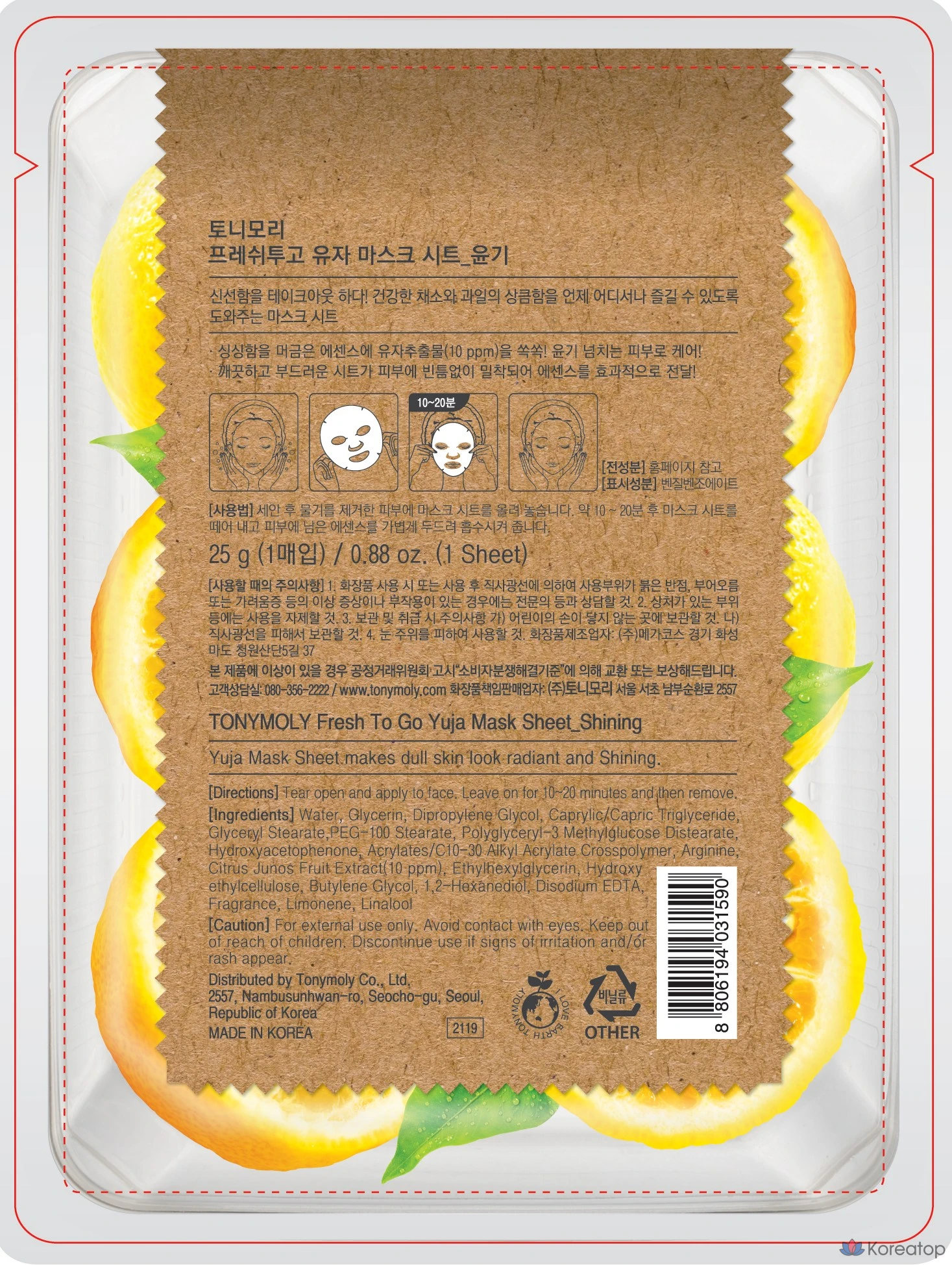 Маска для лица Tony Moly Fresh To Go Mask Sheet Yuzu, 1 упаковка, 1 шт.