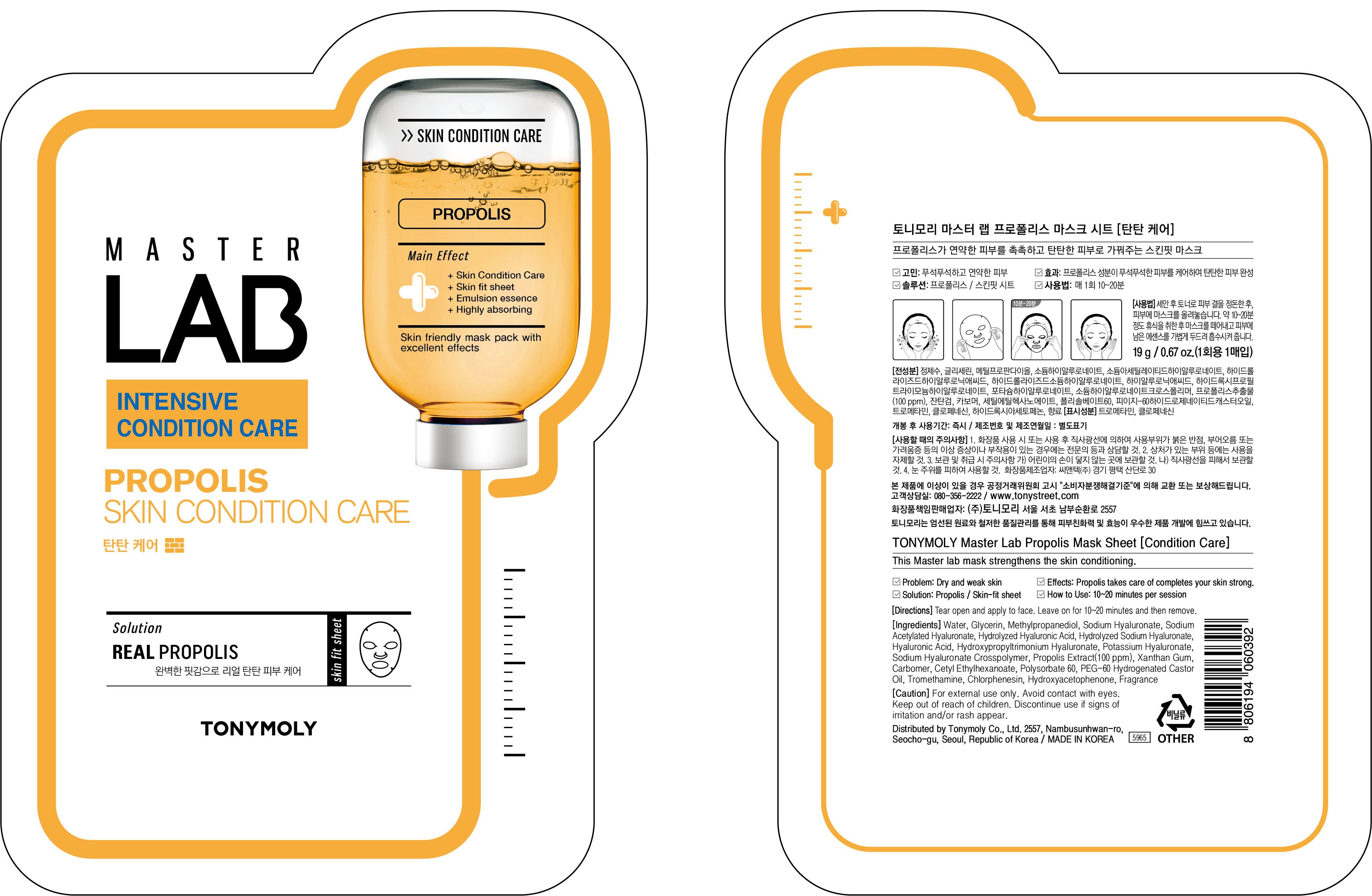 Маска-салфетка с прополисом Tony Moly Master Lab, 1 шт., 1 упаковка