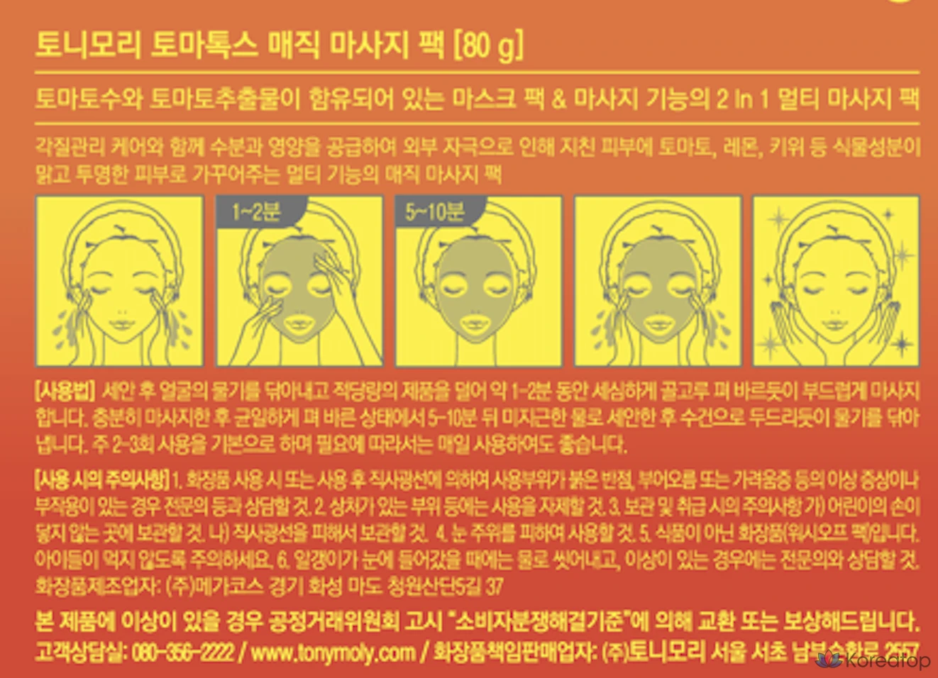 Набор для массажа Tony Moly Tomatox Magic Massage Pack, 80 г, 1 упаковка, 1 шт.