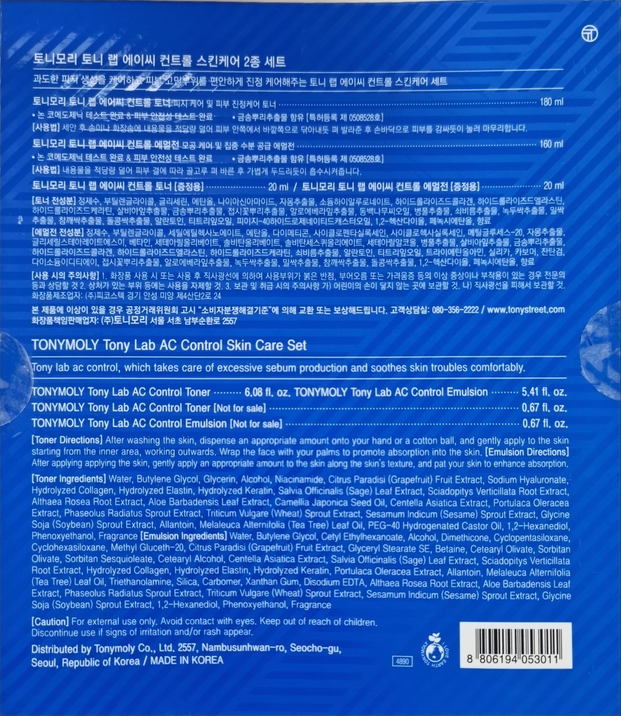 Набор косметики Tony Moly Tony Lab AC Control Skincare из 2 предметов, 1 комплект