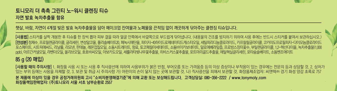 Очищающие салфетки Tony Moly The Chok Chok с зеленым чаем, 100 листов, 1 упаковка.