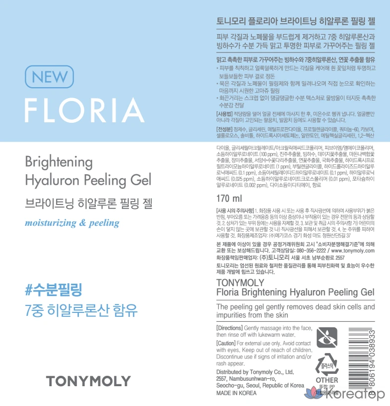 Осветляющий гиалуроновый пилинг-гель Tony Moly Floria, 170 мл, 1 шт.