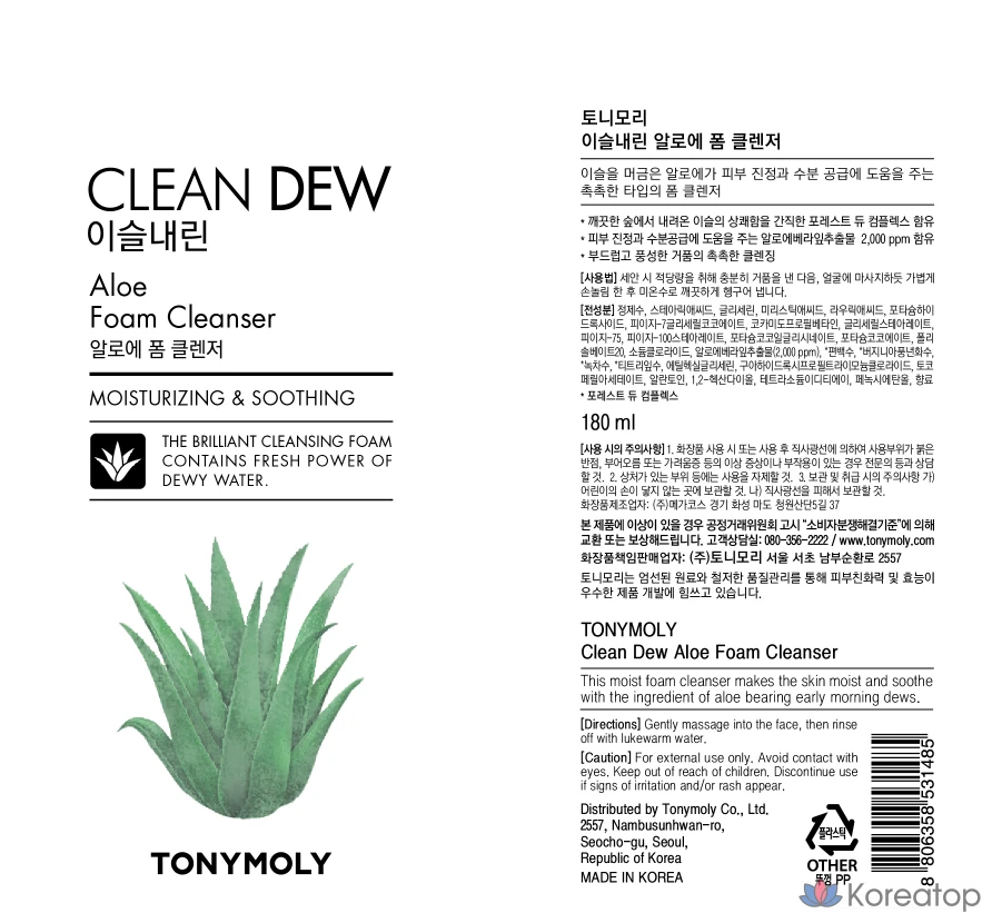 Пенка для умывания Tony Moly Dewy Aloe, 180 мл, 1 шт.