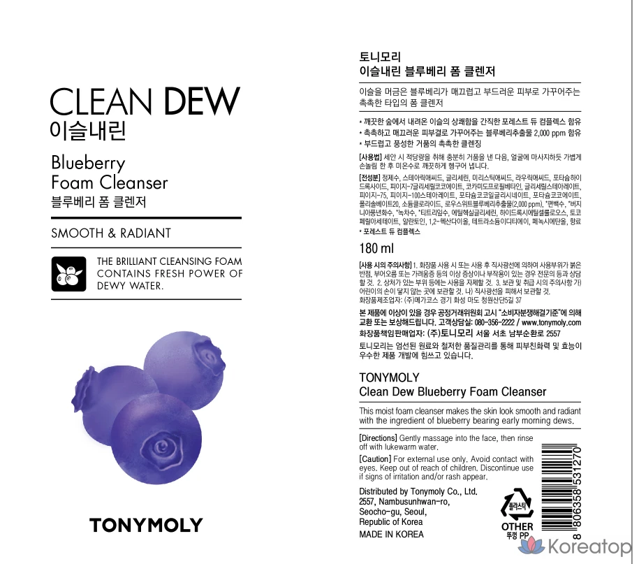 Пенка для умывания Tony Moly Dewy Blueberry, 180 мл, 1 шт.
