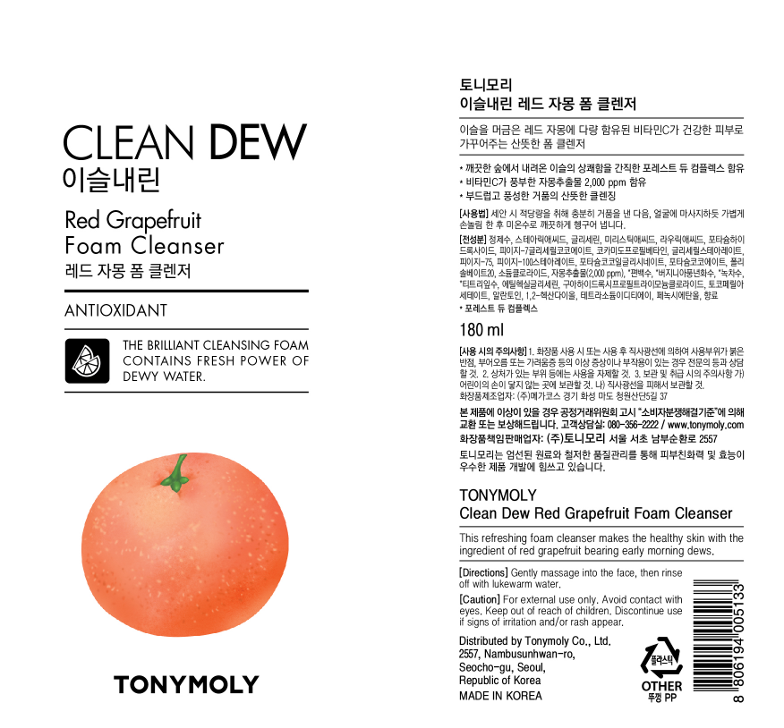 Пенка для умывания Tony Moly Dewy Foam Cleanser с красным грейпфрутом, 180 мл, 1 шт.