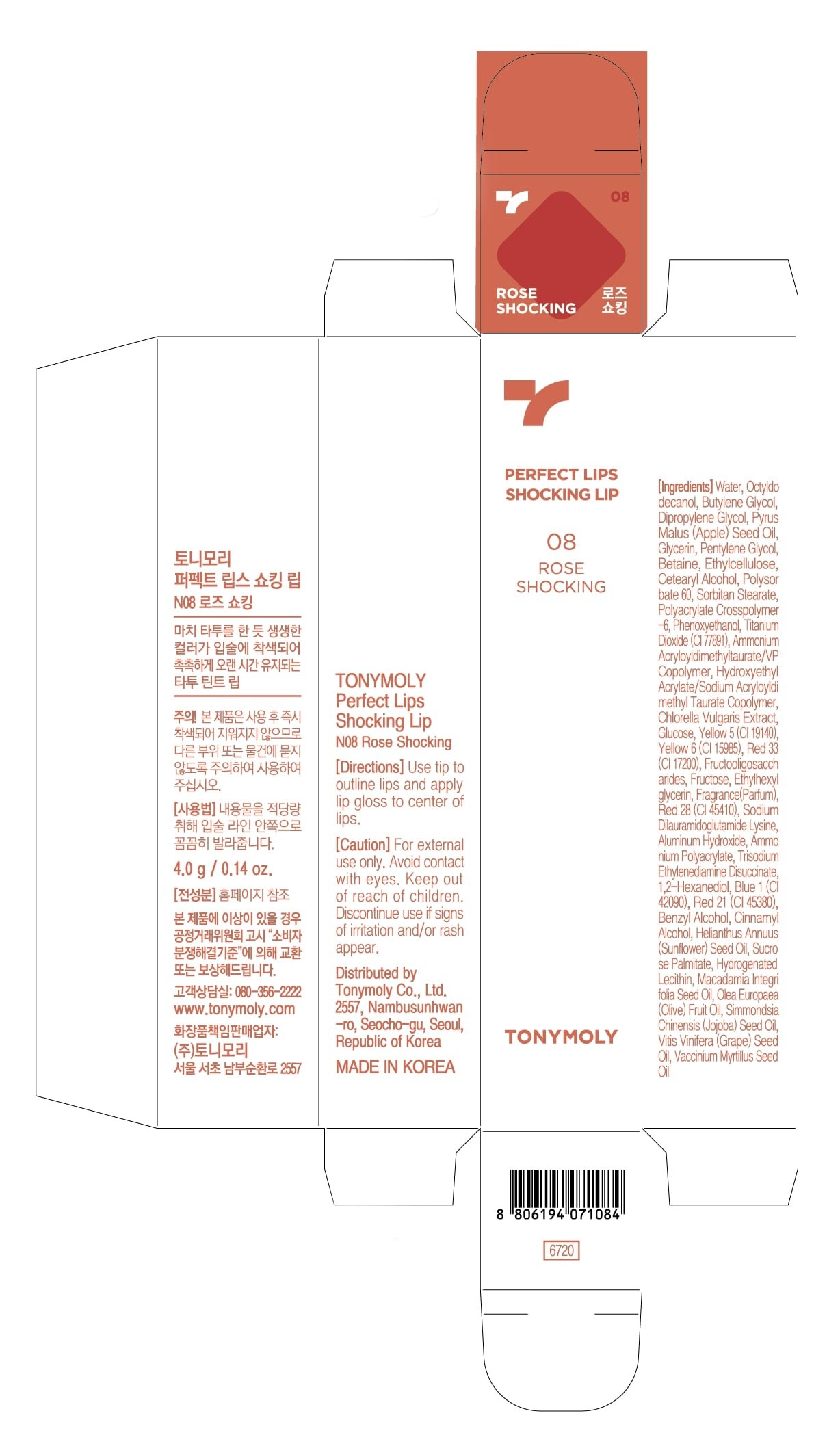 Тинт для губ Tony Moly Perfect Lips Shocking, N08 Rose Shocking, 4 г, 1 шт.