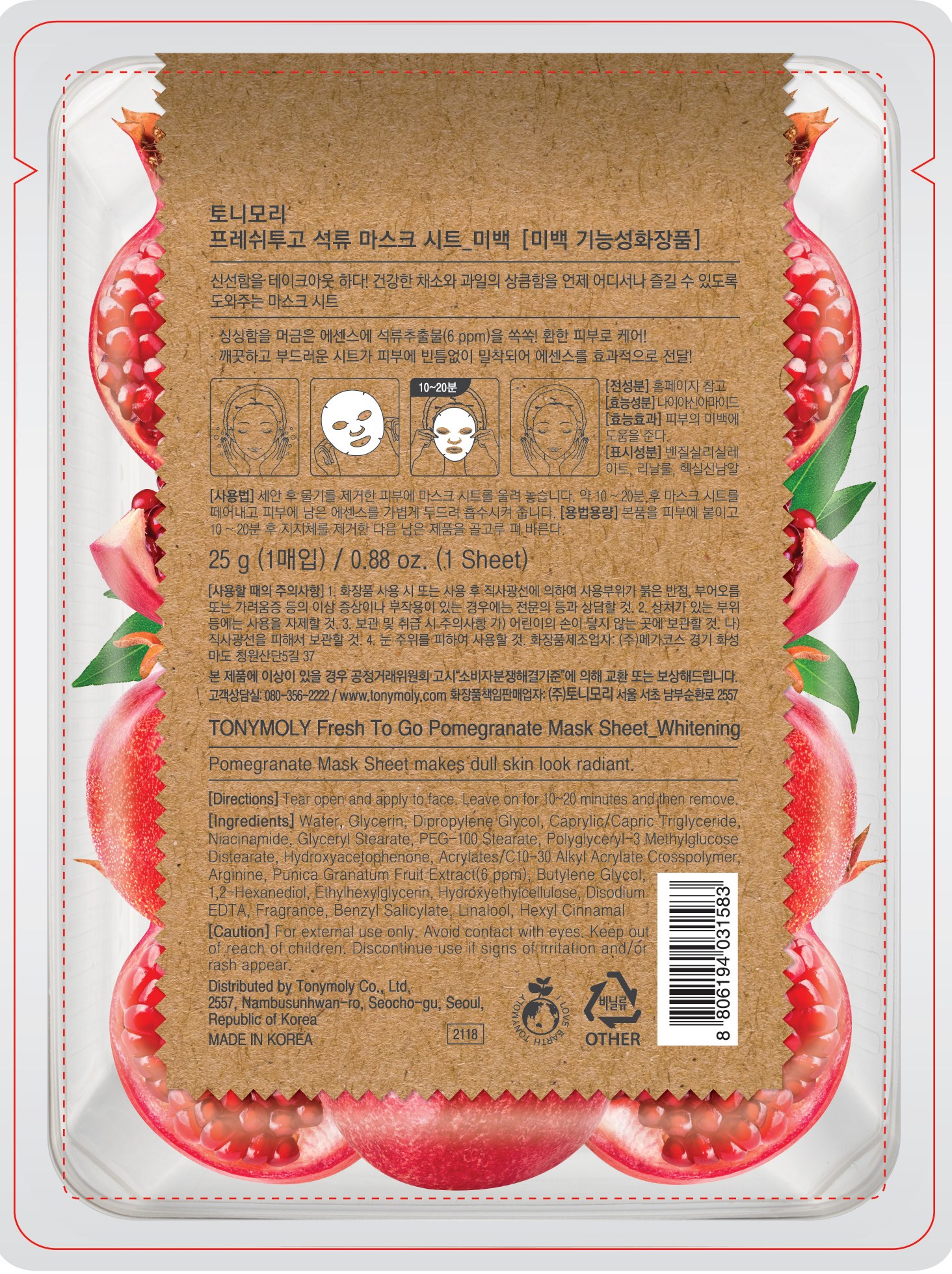 Тканевая маска для лица Tony Moly Fresh To Go с гранатом, 1 упаковка, 1 шт.