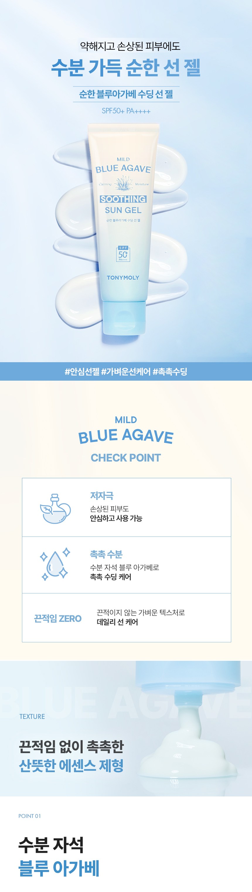Успокаивающий солнцезащитный гель Tony Moly Mild Blue Agave SPF50+ PA++++, 50 мл, 1 шт.