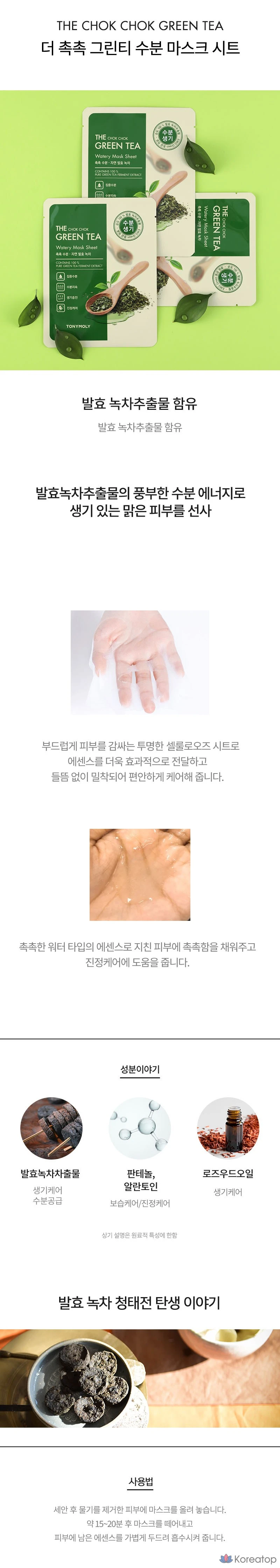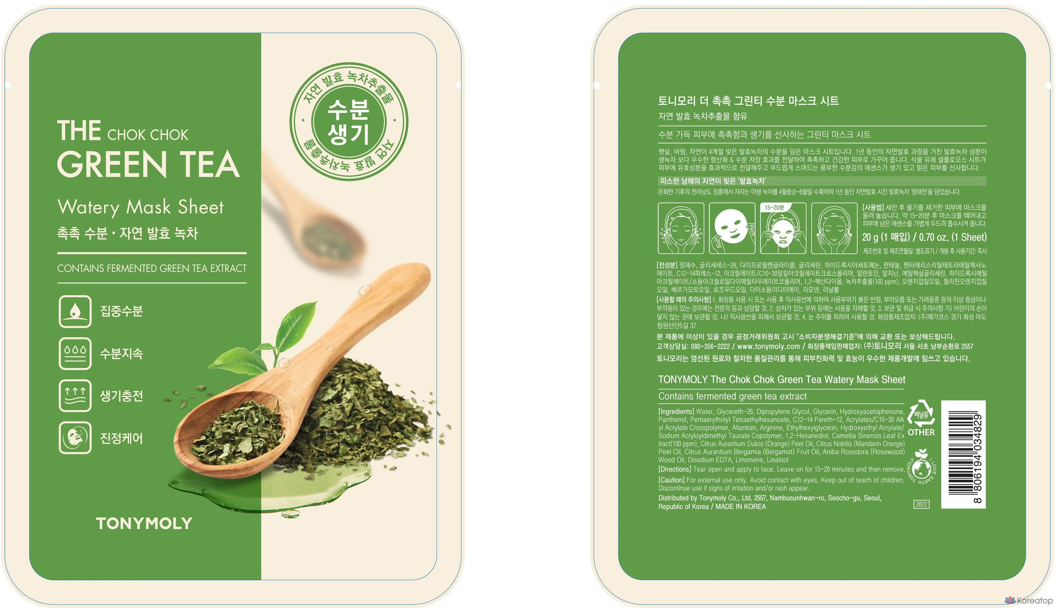 Увлажняющая маска для лица Tony Moly The Chok Chok с зеленым чаем, 5 штук.