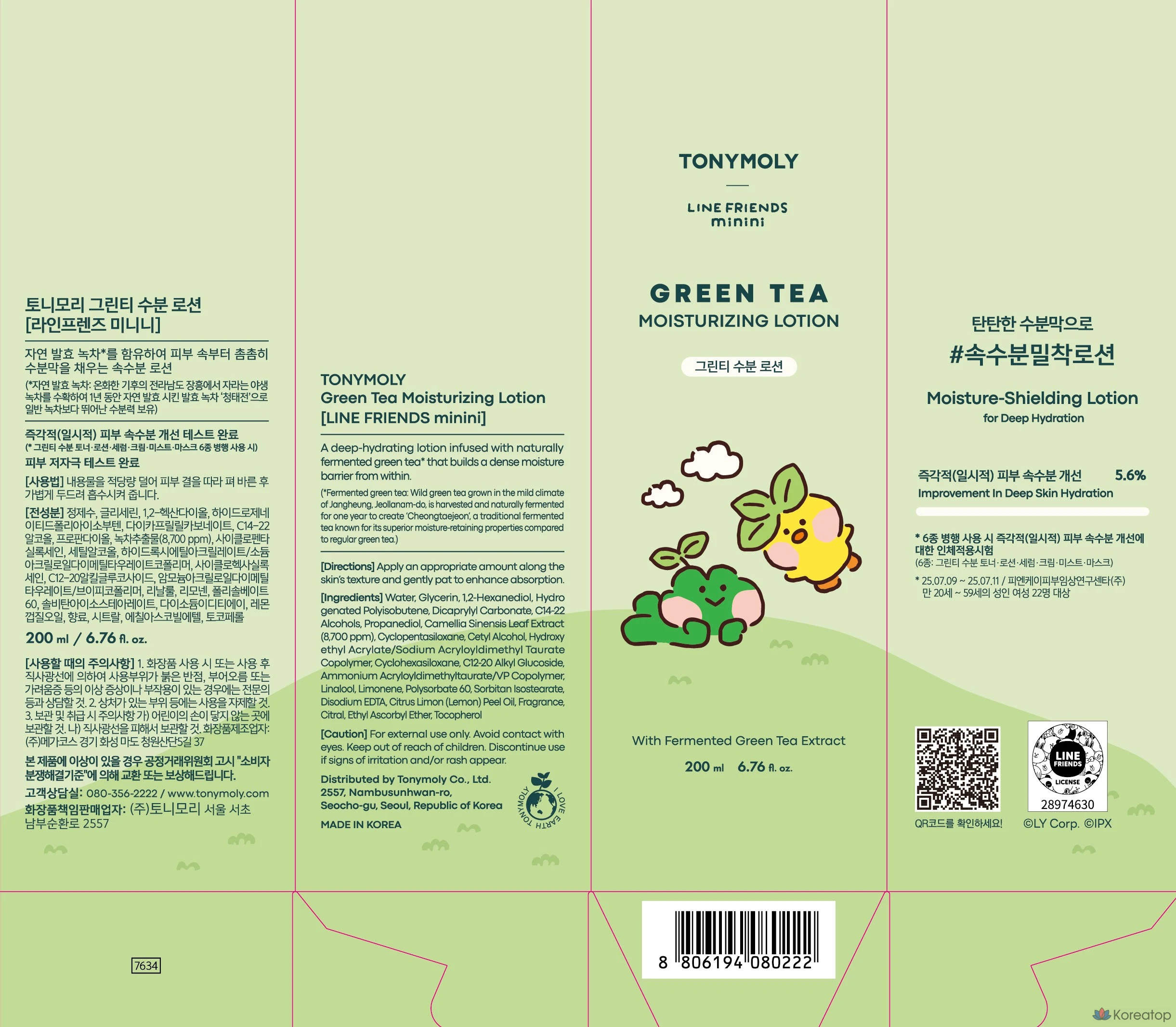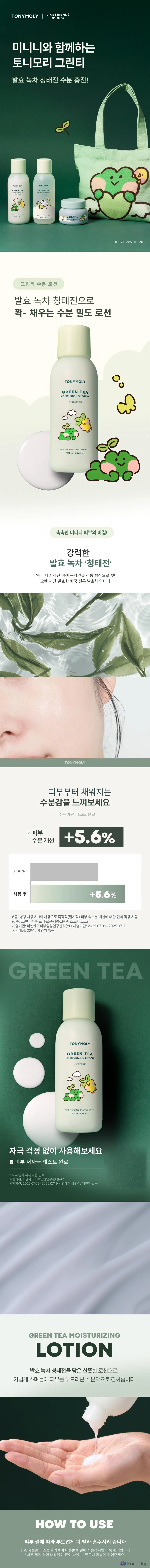 Увлажняющий лосьон для тела Tony Moly Line Friends Minini с зеленым чаем, 1 шт., 200 мл