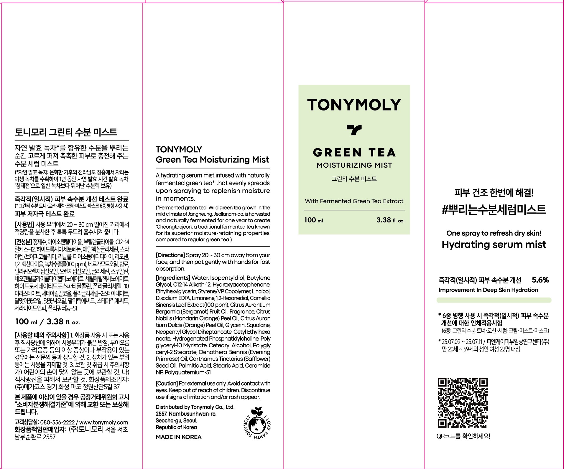 Увлажняющий спрей для лица Tony Moly с зеленым чаем, 1 шт., 100 мл
