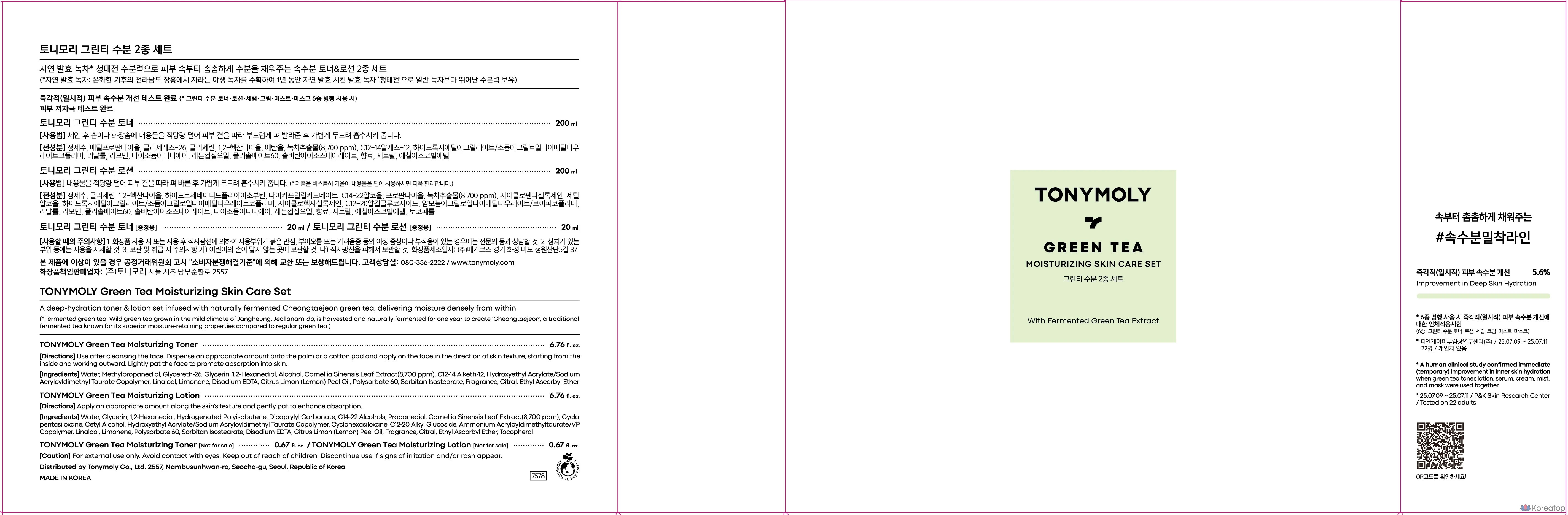 Увлажняющий тоник и лосьон с зеленым чаем Tony Moly, 1 комплект