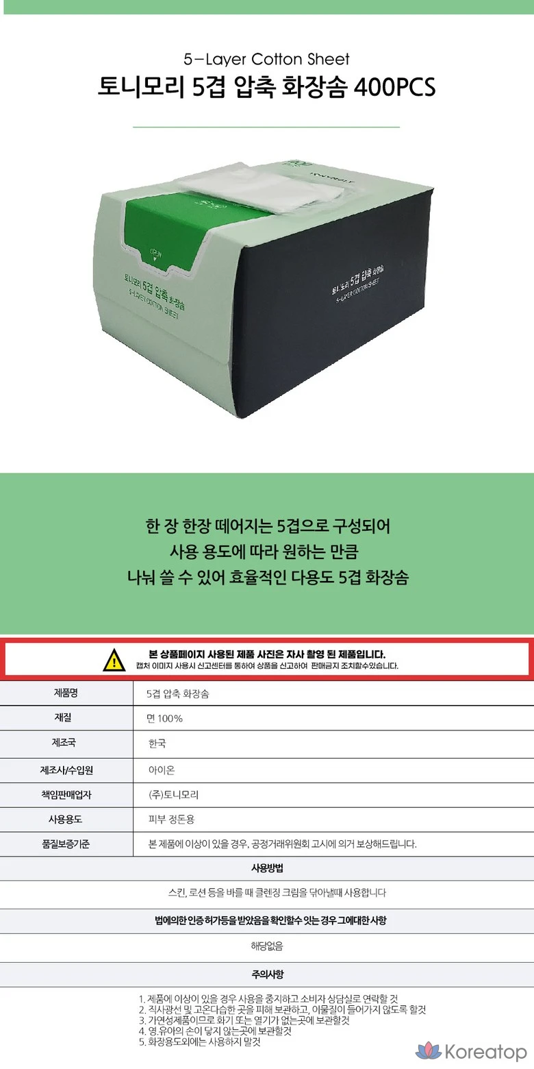 Ватные диски Tony Moly, 5-слойные, 400 листов, 1 упаковка, 400 штук.