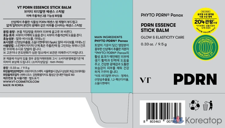 Бальзам-эссенция VT Cosmetic PDRN в стике, 9,5 г, 1 шт.