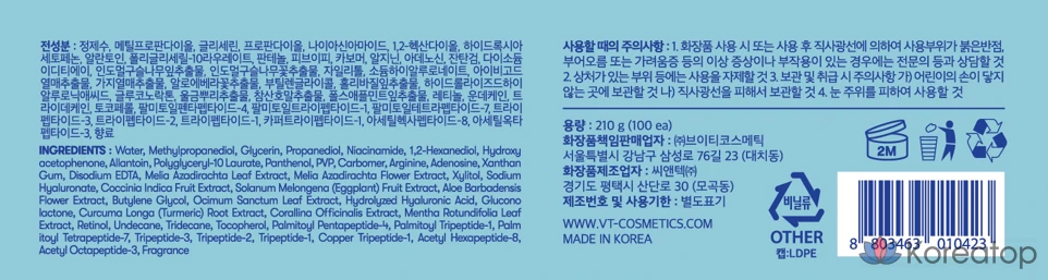 Набор для ухода за кожей VT Cosmetic Smooth 31°, 1 упаковка, 100 штук.