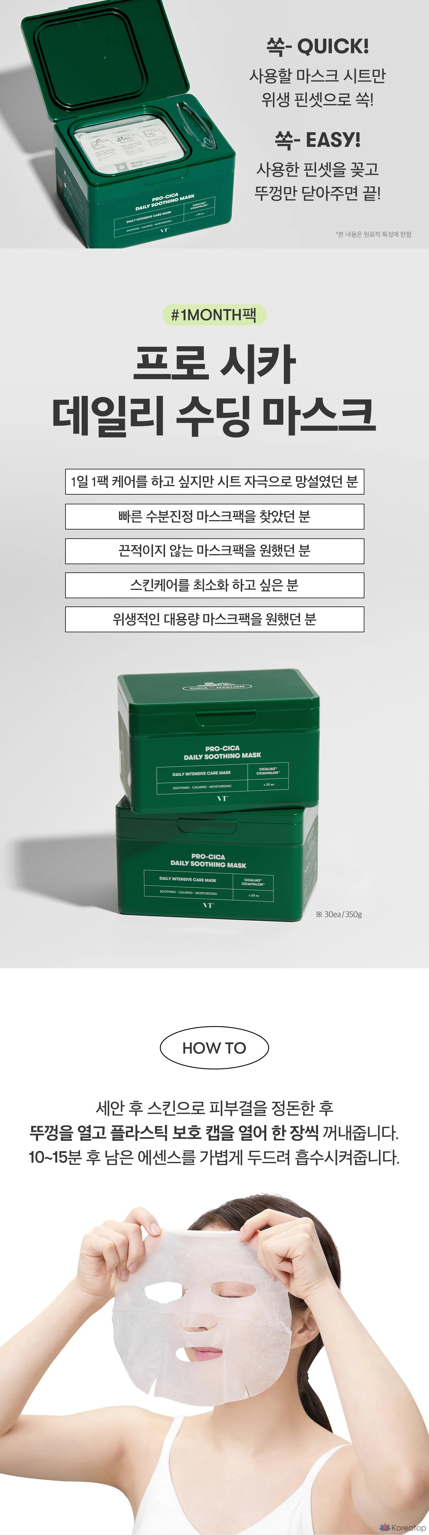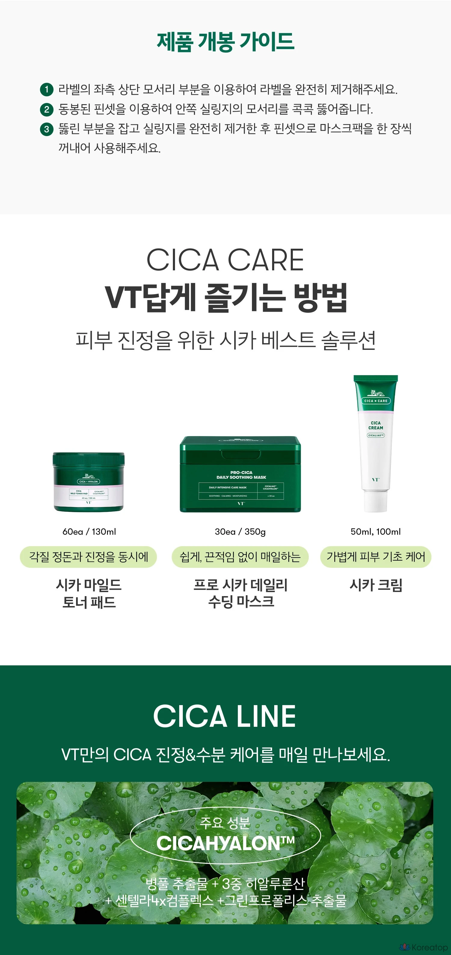 Успокаивающая маска для лица VT Cosmetic Pro Cica, 30 штук, 1 упаковка