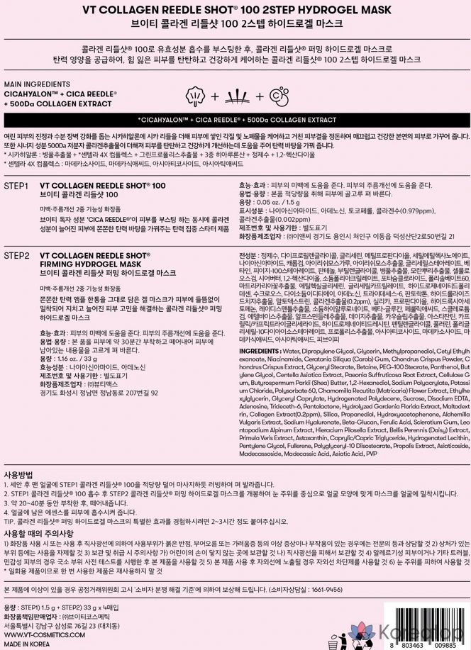 VT Cosmetic Collagen Riddle Shot 100 2-шаговая гидрогелевая маска, 34,5 г, 1 упаковка, 1 шт.