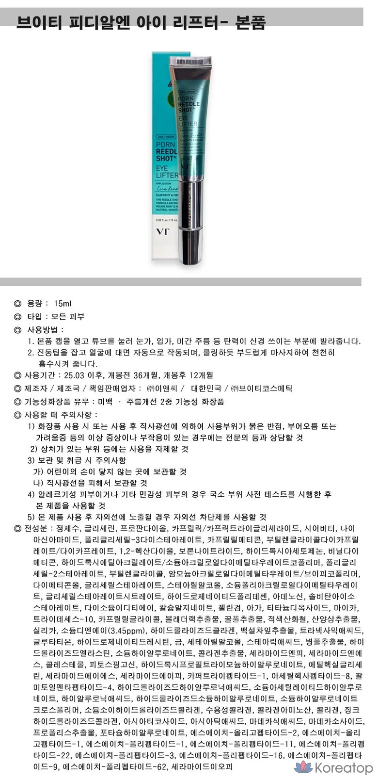 VT PDRN Riddle Shot Vibration Eye Lifter, сменный блок, набор из 2 предметов, 1 шт., 15 мл